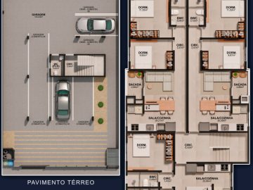 Unidades com 2 dormitórios e suíte, além de vaga de garagem coberta ou parcialmente descoberta.